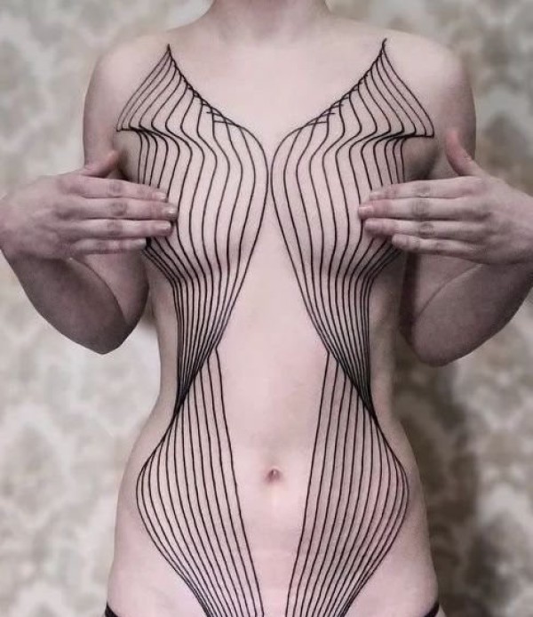 极简线条纹身 多款极简线条纹身素描欧美抽象纹身图片