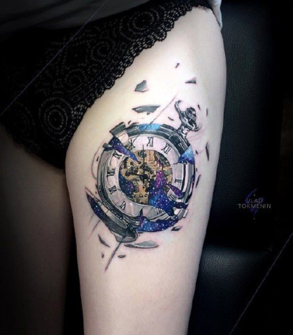 时钟纹身 警醒时间的时钟怀表纹身图案