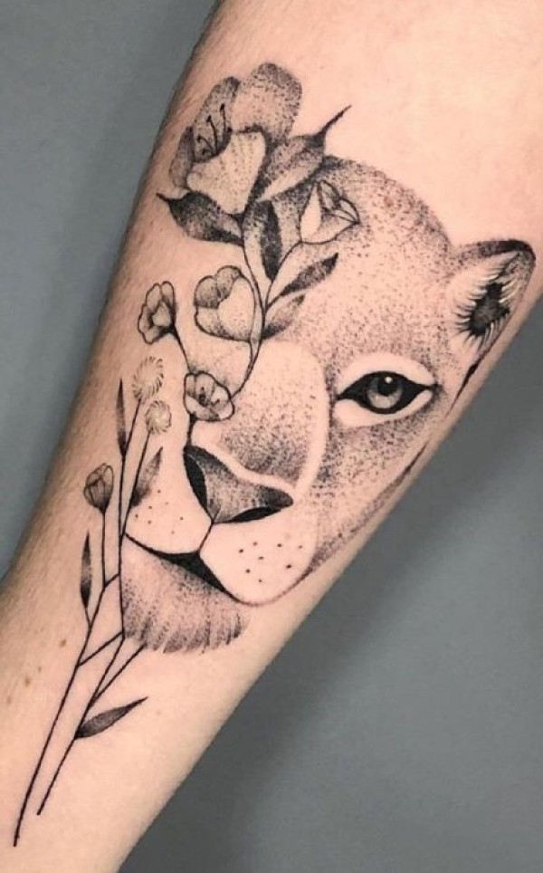 狮头虎头纹身 9组逼真的手臂包臂写实虎头和狮子头纹身图案