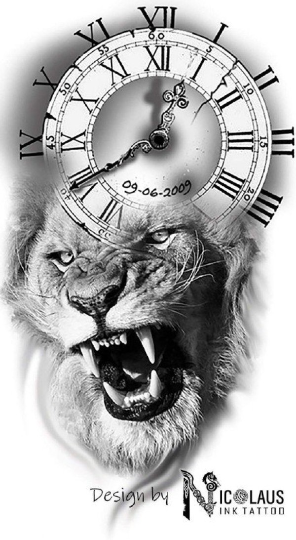 狮头虎头纹身 9组逼真的手臂包臂写实虎头和狮子头纹身图案