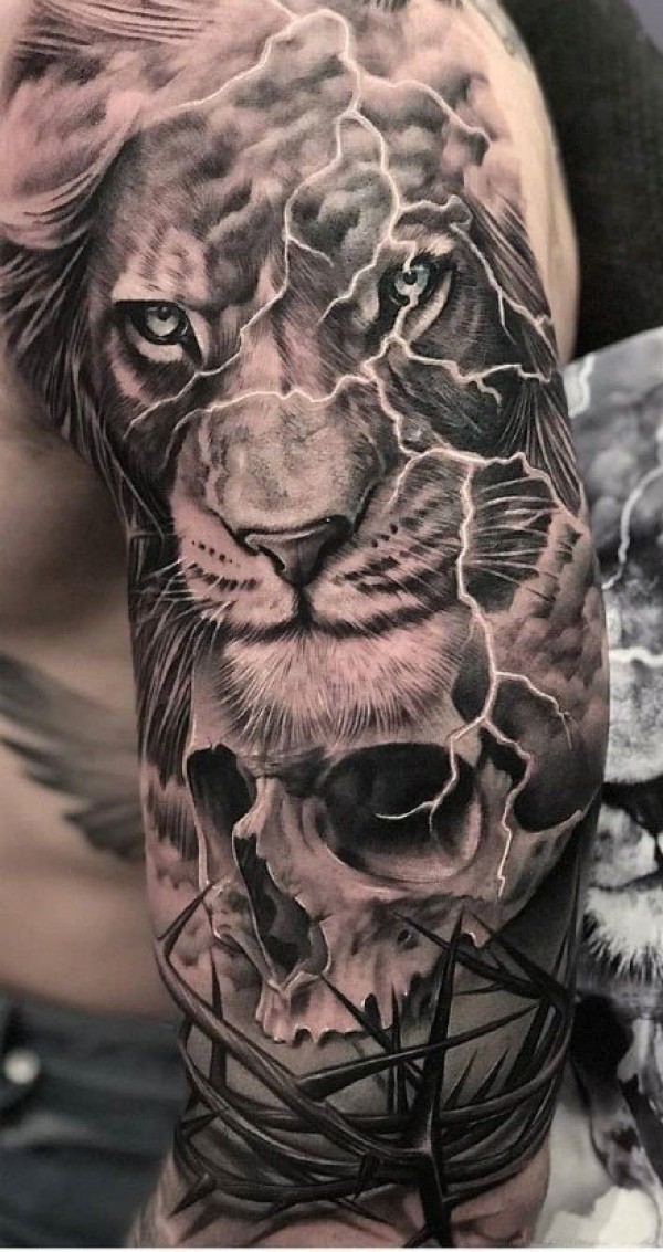 狮头虎头纹身 9组逼真的手臂包臂写实虎头和狮子头纹身图案