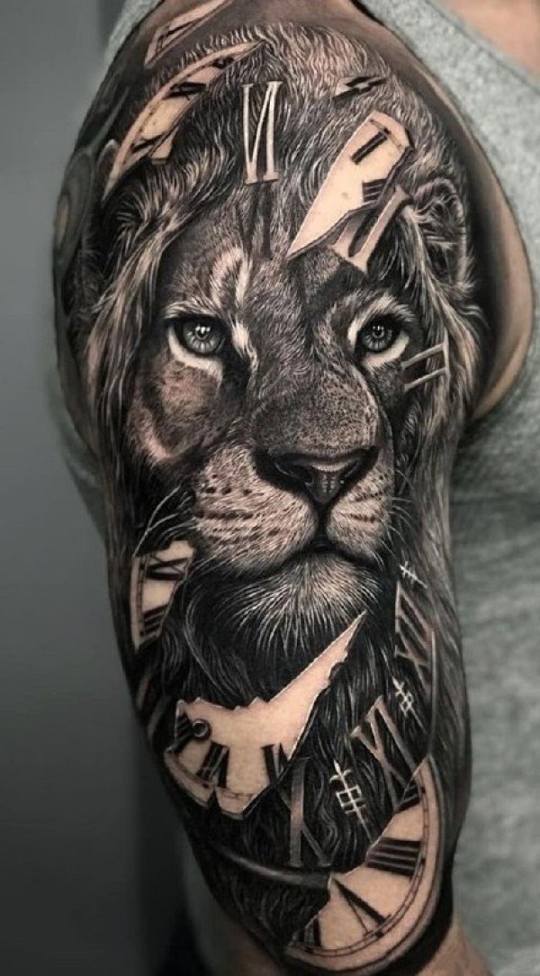 狮头虎头纹身 9组逼真的手臂包臂写实虎头和狮子头纹身图案