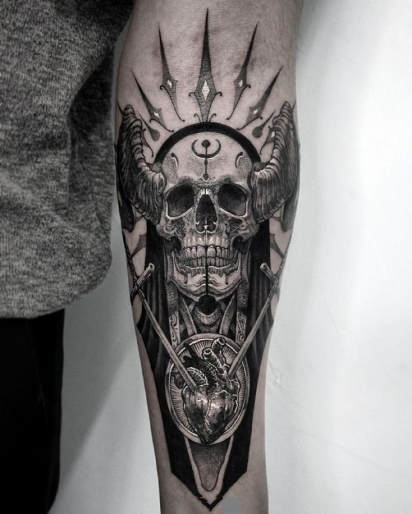 暗黑纹身图案--16张暗黑风格的手臂和腿部的纹身图案