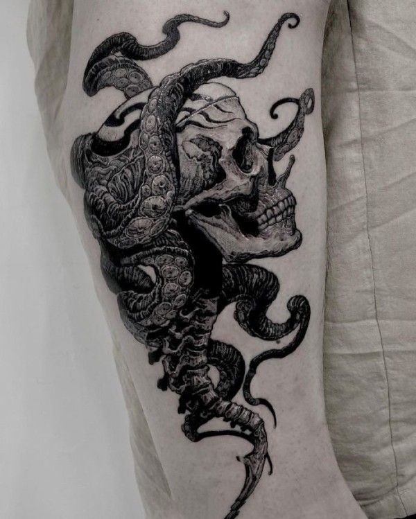 暗黑纹身图案--16张暗黑风格的手臂和腿部的纹身图案