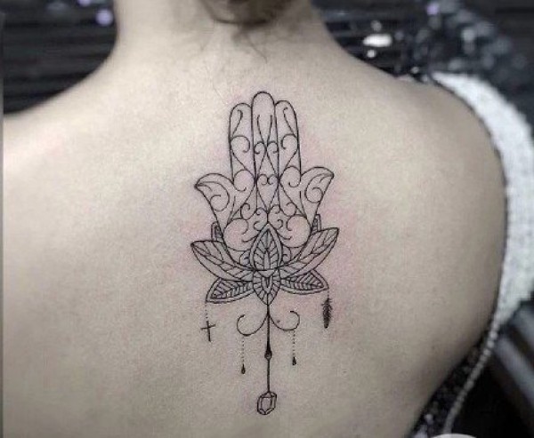 多款女孩背上漂亮的法蒂玛之手纹身图案