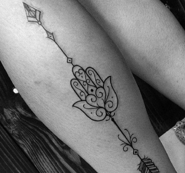 黑色线条素描文艺唯美经典吉祥法蒂玛之手纹身手稿