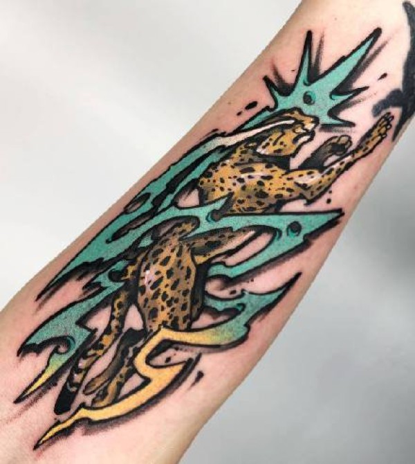 几张炫彩newschool彩色手臂纹身图案作品
