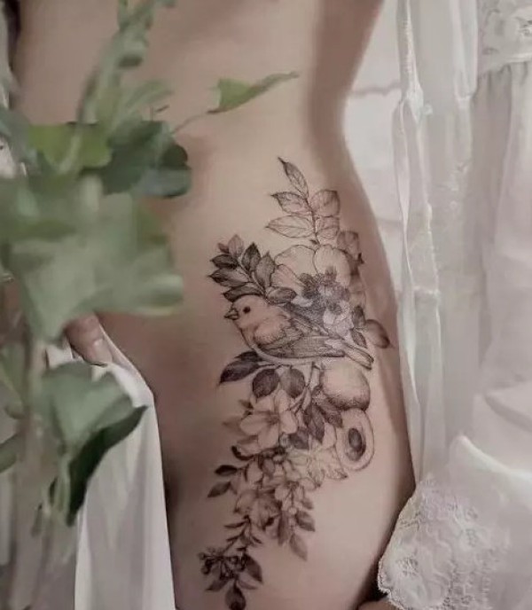 干净,生动的花鸟纹身