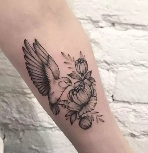 肩部上干净生动时尚好看的花鸟纹身图图片