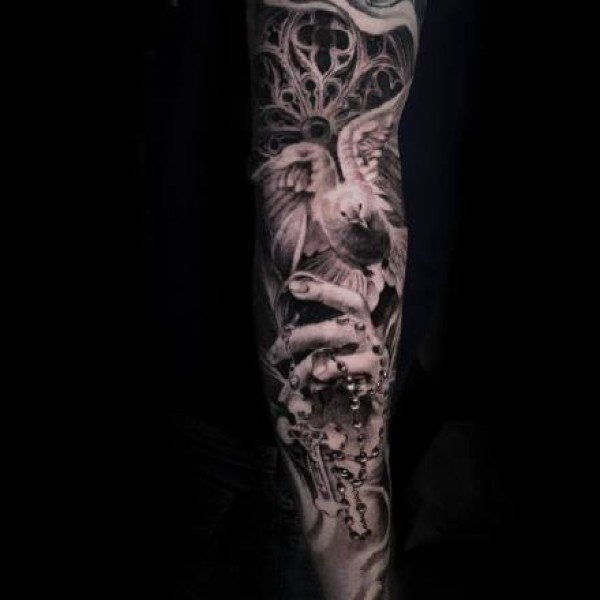 大臂外侧的9款包臂欧美写实纹身图片