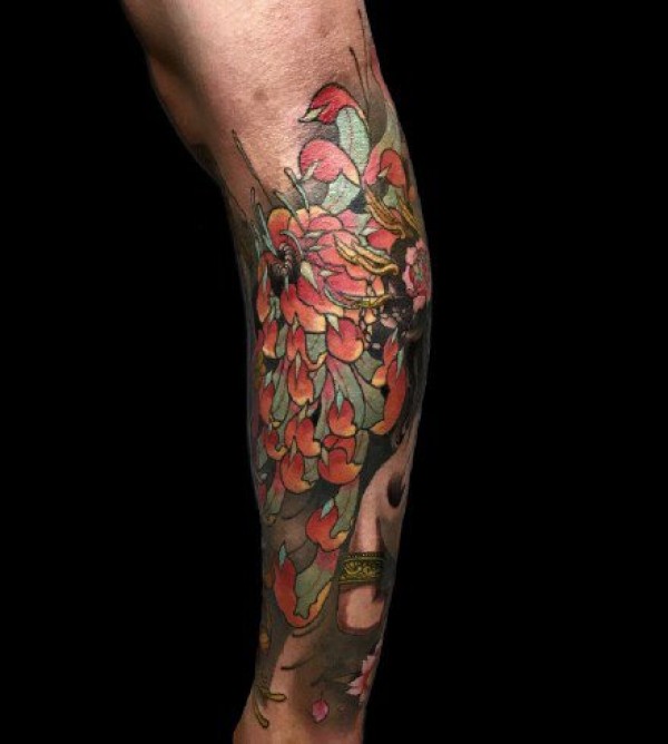 一组小腿欧美写实彩色纹身图案