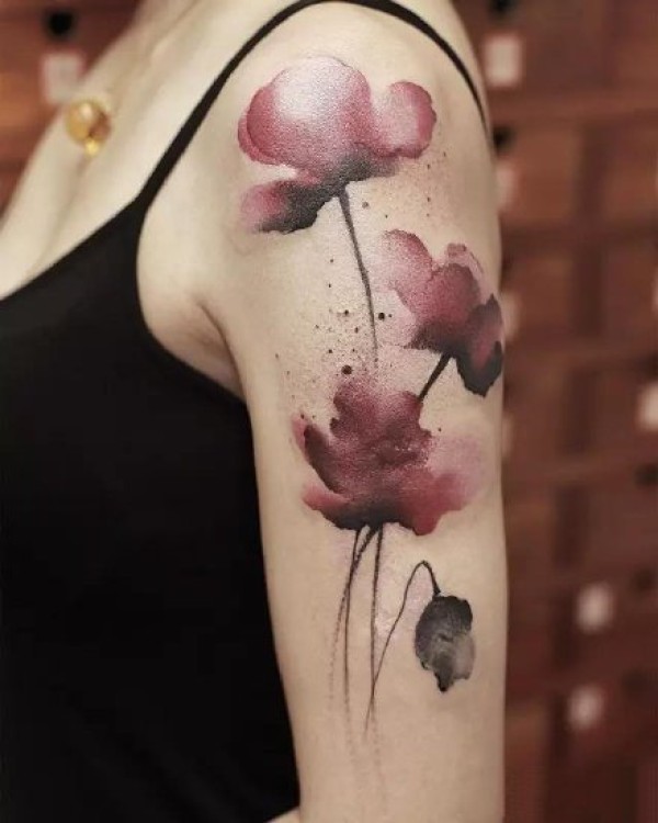 一组花卉的水墨女生纹身图案