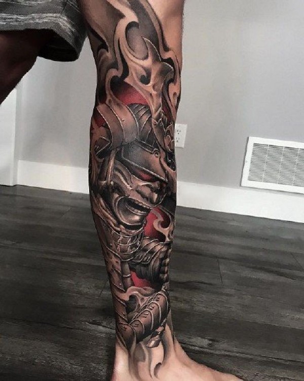 鬼武士纹身 包臂包腿的一组创意武士纹身图案