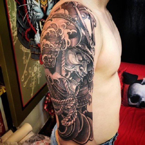 鬼武士纹身 包臂包腿的一组创意武士纹身图案