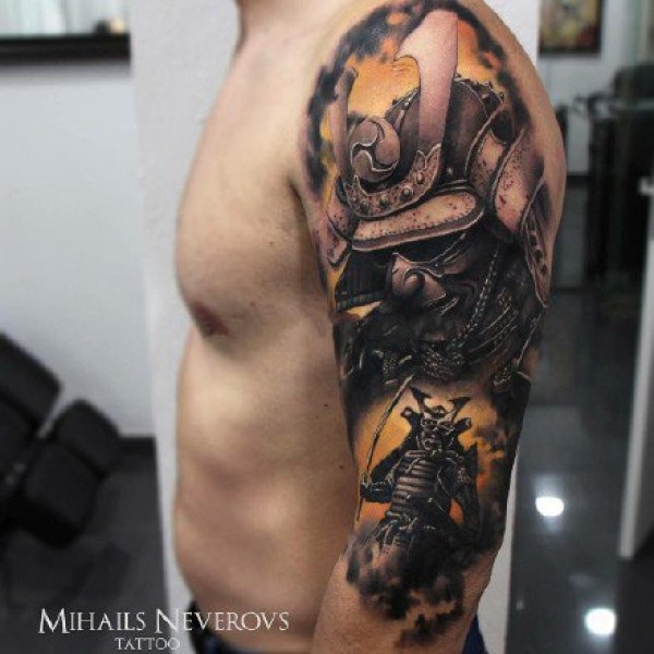 鬼武士纹身 包臂包腿的一组创意武士纹身图案