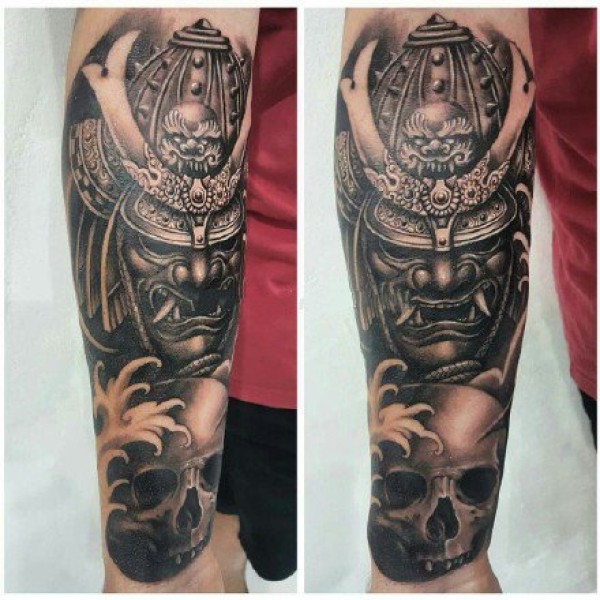 鬼武士纹身 包臂包腿的一组创意武士纹身图案