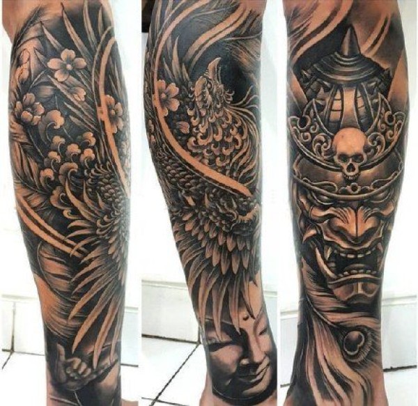 鬼武士纹身 包臂包腿的一组创意武士纹身图案