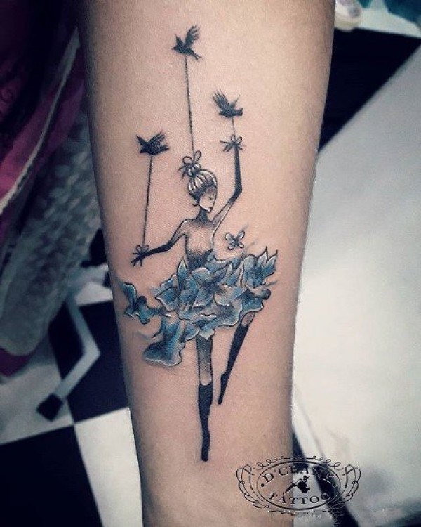 跳舞的女孩子喜欢的舞蹈主题纹身图案和手稿