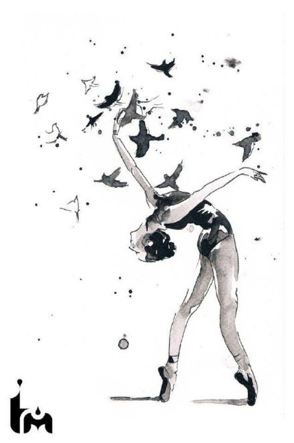 跳舞的女孩子喜欢的舞蹈主题纹身图案和手稿