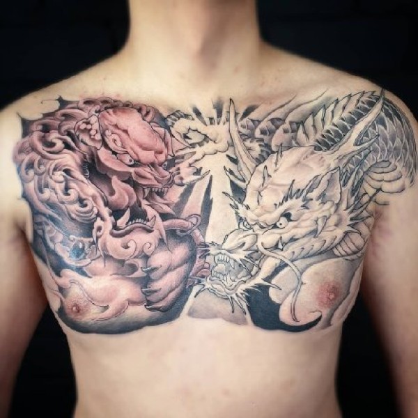 花胸纹身--一组男性霸气的大花胸纹身图案作品欣赏