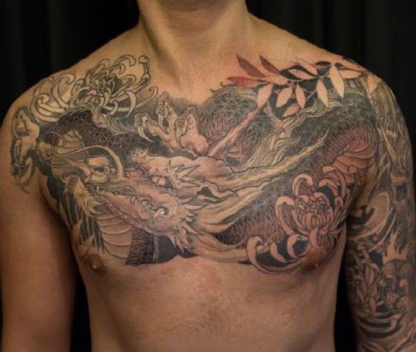 花胸纹身--一组男性霸气的大花胸纹身图案作品欣赏