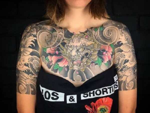 女性大花胸纹身_43张霸气漂亮的女性大花胸纹身图案作品