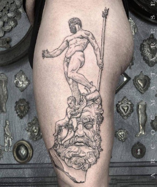 手臂大腿黑灰纹身文艺复兴题材纹身图片