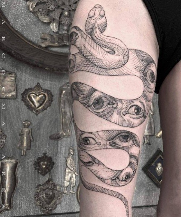 花腿纹身--一组大黑腿纹身图案作品欣赏