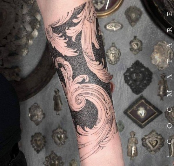 手臂大腿黑灰纹身文艺复兴题材纹身图片