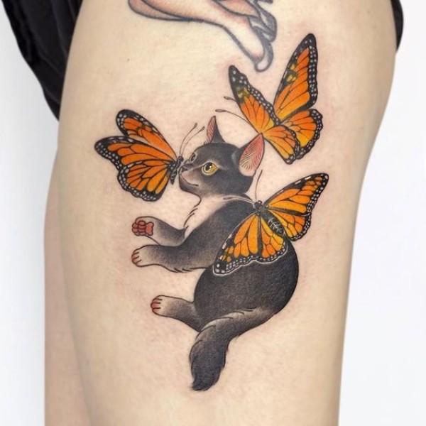 腿部好看的欧美风格的蝴蝶纹身图案_蝴蝶纹身图案大全_纹身图吧