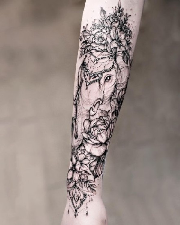 象纹身 9款大象主题的黑灰纹身图片赏析