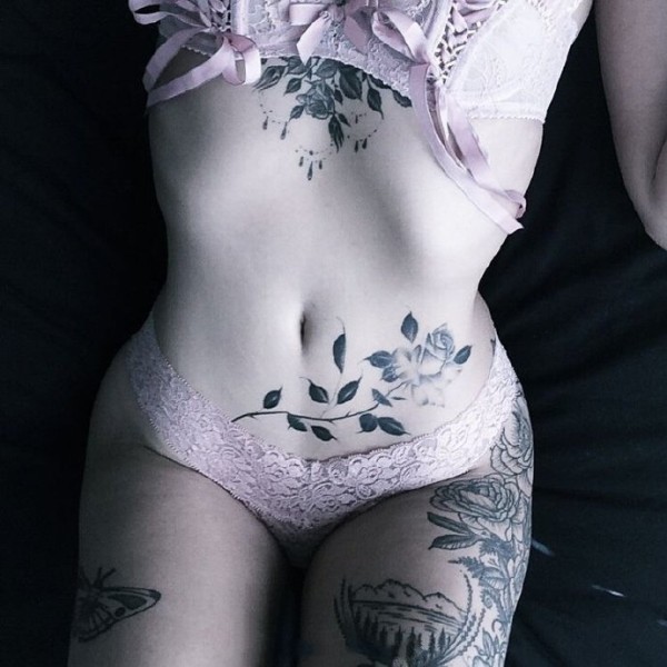 女性大花胸纹身_43张霸气漂亮的女性大花胸纹身图案作品