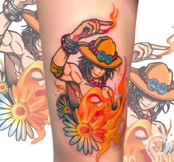 腿部点刺日本漫画海贼王全体成全纹身图案