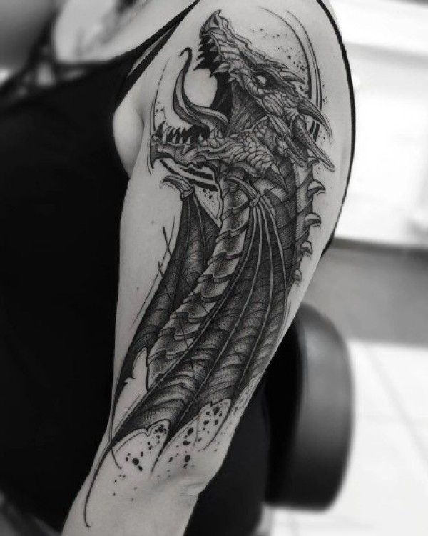 龙纹身手稿_一组老传统黑灰龙手稿纹身图案
