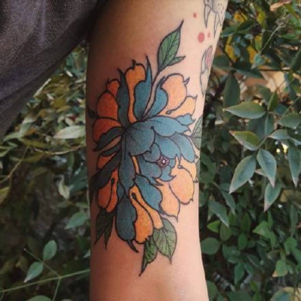 花朵纹身图案-20张身体各个部位传统彩绘纹身图案