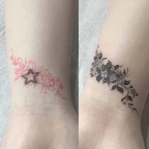 用玫瑰花做的修改遮盖纹身图案前后对比图