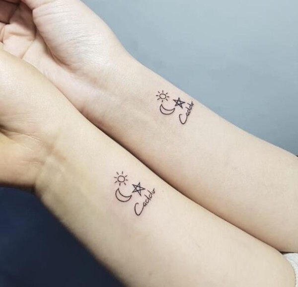 一组适合闺蜜姐妹情侣的简约手臂小清新纹身图案