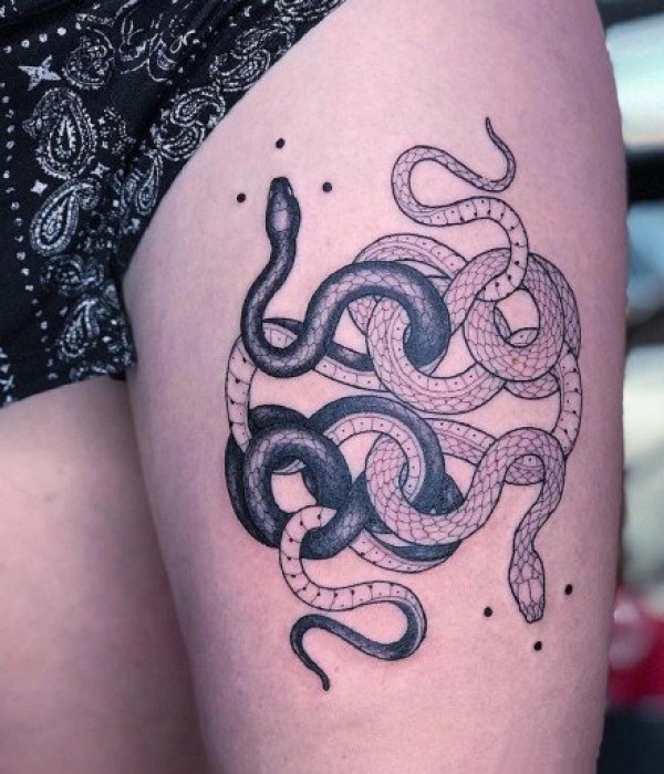 性感美女大腿部细腻漂亮的蛇纹身图片