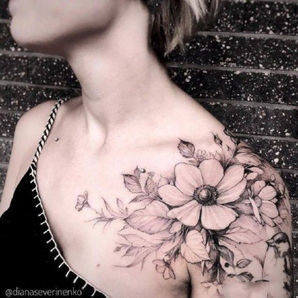 一款女性胸口狐狸牡丹纹身图案_女生纹身图案大全_纹身图吧