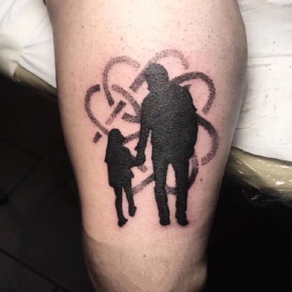 牵手纹身 象征父爱母爱的大手牵小手纹身作品