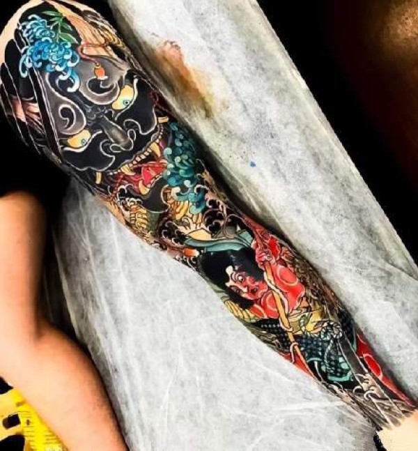 花臂:一组老传统风格的大花臂纹身图片