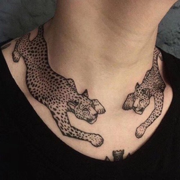 30款男性超帅气的黑灰色脖子纹身图案大全