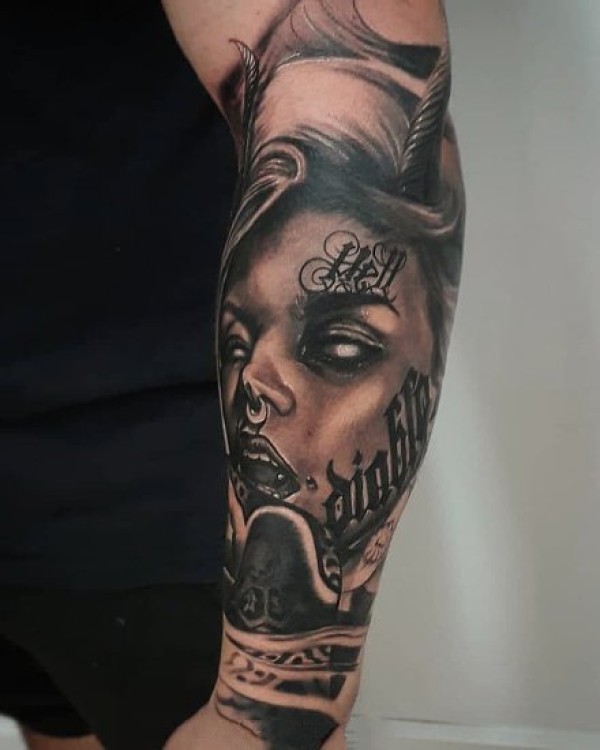欧美花臂纹身_22张霸气黑灰欧美大黑花臂纹身图案作品图片