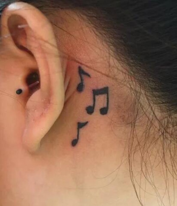 女生耳后小清晰彩色花纹身图片由纹身提供