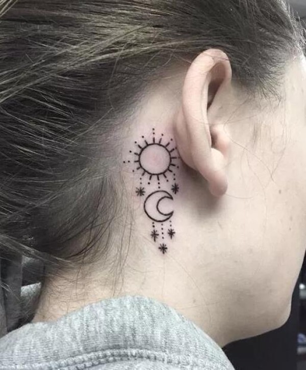 女生耳后小清晰彩色花纹身图片由纹身提供
