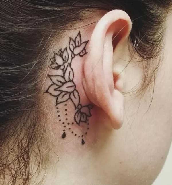 女生耳后小清晰彩色花纹身图片由纹身提供