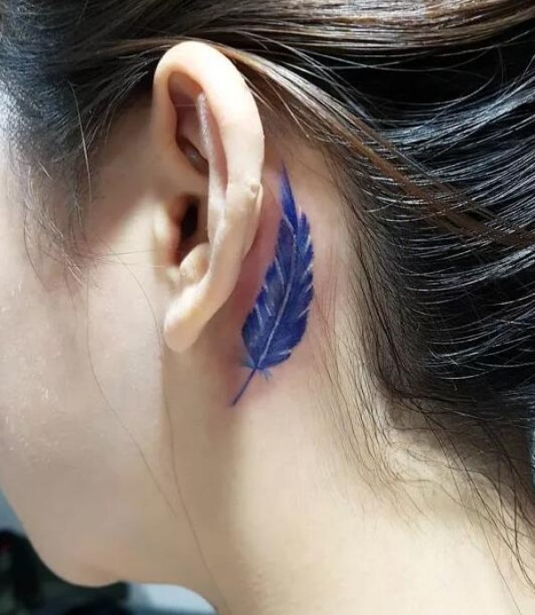 女生耳后小清晰彩色花纹身图片由纹身提供