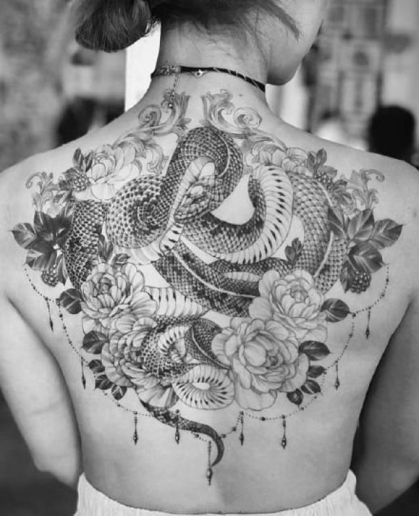 女性大花胸纹身_43张霸气漂亮的女性大花胸纹身图案作品