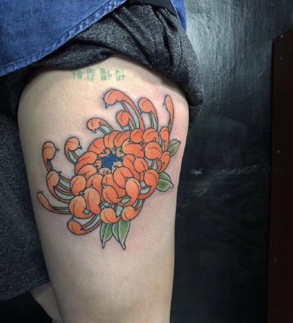 传统花腿纹身--18张传统风格的大花腿纹身图案作品