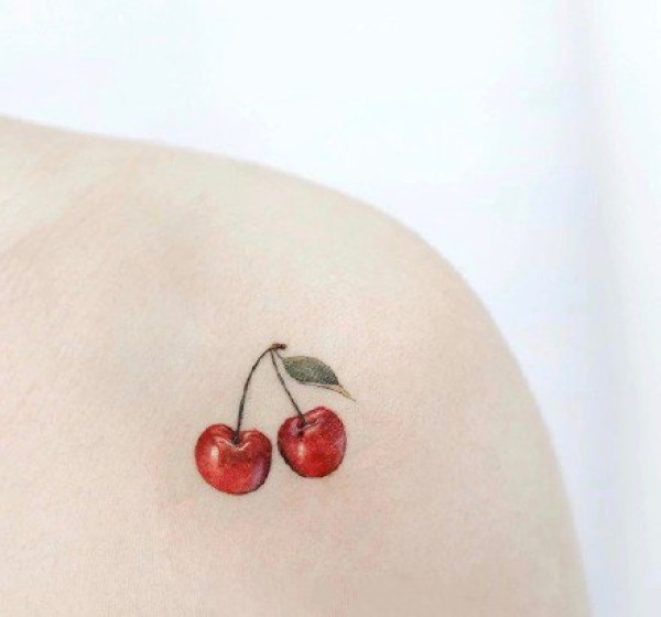 女性身上看起来是如此可口的水果樱桃纹身图案